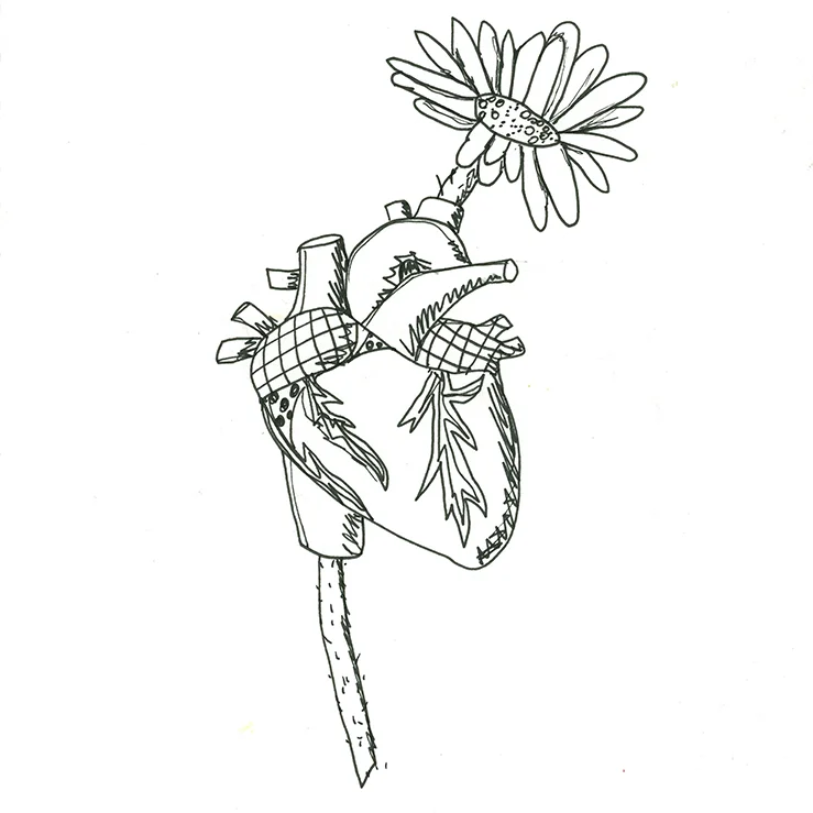 Day 34 - My sister wakes us at 2:30 in the morning. It happened. My Dad is dead. We quietly dress, and move towards the hospital and the room where he no longer sleeps. Later in the day I draw the one part of his body that you wouldn’t think I’ve seen but I have. I once sat in the room as the heart specialists used an echocardiogram to examine his heart. I saw it beating on a small black and white screen—right ventricle, left ventricle. I heard it. It was strong and steady. The room was dark and quiet, except his heart, which filled the space from top to bottom. Just a day ago I felt his heart beat under my hand as I kissed him on the head and said, “Thank you. I love you. I’m sorry.” I felt it. I saw it. And now it is no more. I draw a heart and a flower. He is gone