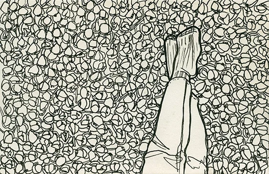 Day 39 - We fly to Florida for a memorial service and his final internment. I am behind on the project so I use the long plane ride to exercise my hands and draw a few pieces in an attempt to close the gap. I don’t worry about drawing for a few days. I have my family. I try to exist in as neutral a state as possible, which is difficult.