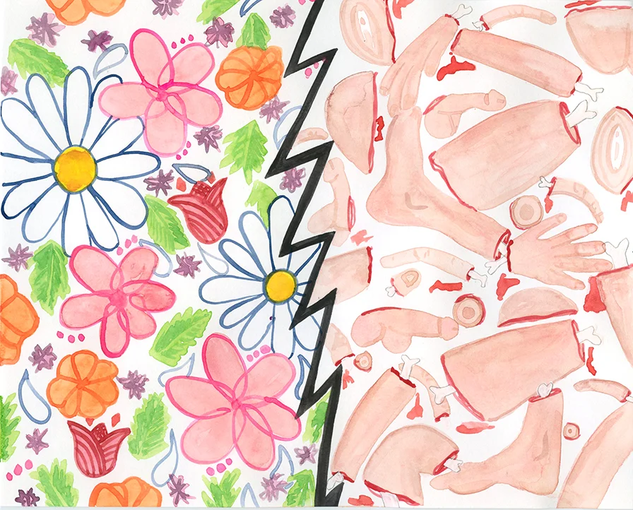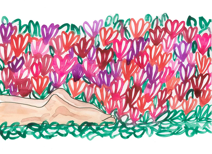 Day 94 - I was bored of people parts. I was bored of flowers. But I kept going and now I’m enjoying myself again. The paintings each day start to feel familiar. I continue until I am done.